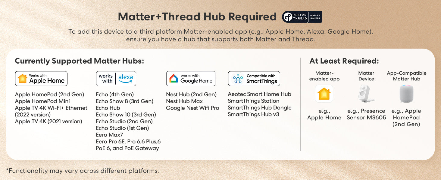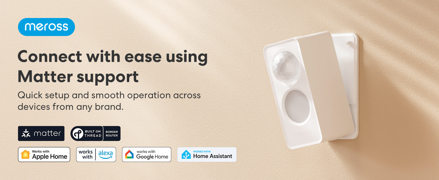- Light sensor enables smart lighting control (note: Alexa currently doesn’t support the light sensor). - Whole-Home Smart Integration: Supports Matter over Thread direct connection to Apple HomeKit, Alexa, Google Home, SmartThings, and Home Assistant — no extra hub (such as Meross MSH450) or 2.4GHz Wi-Fi required. Experience low-latency local control: night lights turn on automatically when you get up, and lights and AC activate instantly when you return home. Matter local control means higher security — your data stays private, and it works even without the internet.