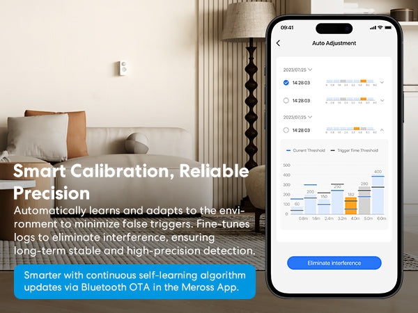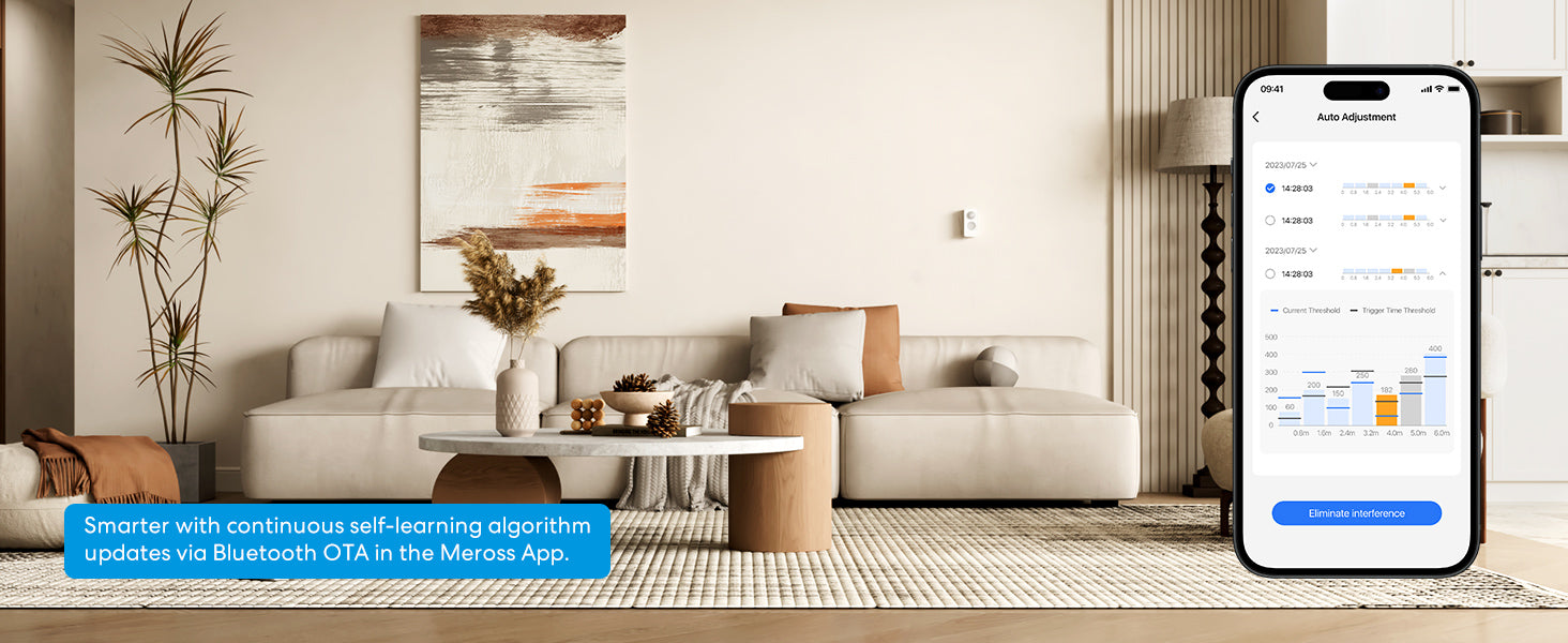 AI Anti-Interference: With one-tap auto adjust, AI precisely filters out interference caused by fans, air conditioners, and other appliances—delivering accurate detection tailored to diverse home needs.